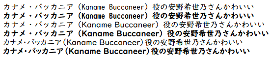 <div style="font-family:'UD Digi Kyokasho NK-B'">カナメ・バッカニア(Kaname Buccaneer)役の安野希世乃さんかわいい</div>
